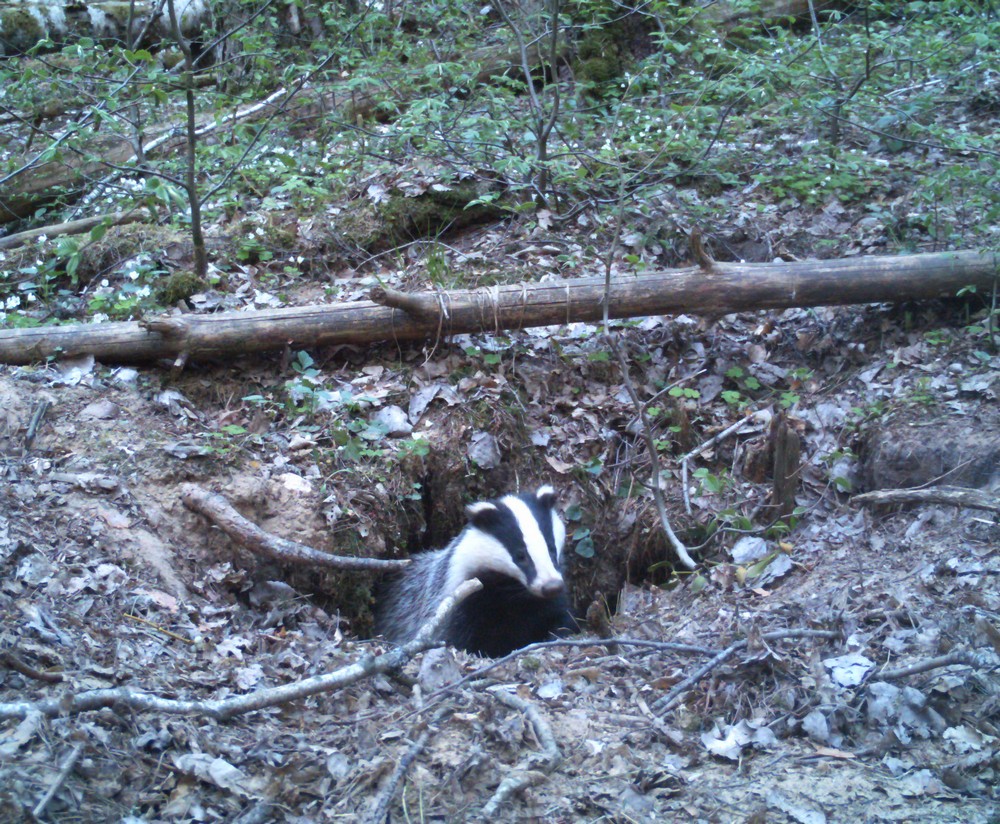 Сотрудники научного отдела национального парка «Беловежская пуща» проводят учет барсуков, используя метод выявления жилых поселений. В своей норе этот зверек живет круглогодично в отличие от других норных хищников.