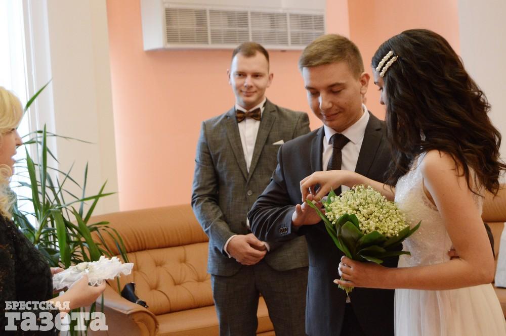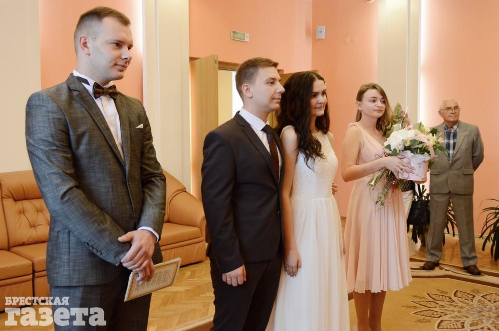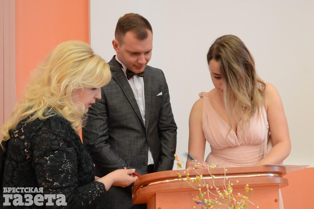 Церемонию их бракосочетания в малом зале отдела ЗАГС Брестского горисполкома проводила главный специалист учреждения Ирина Кононко. В пятницу, кроме росписи, их ждало еще венчание в церкви. В этот день поздравить их пришли самые близкие друзья и родные. Банкет же молодожены запланировали на субботу 25 мая. На усадьбу, где они назначили торжество, приглашены более 100 человек.