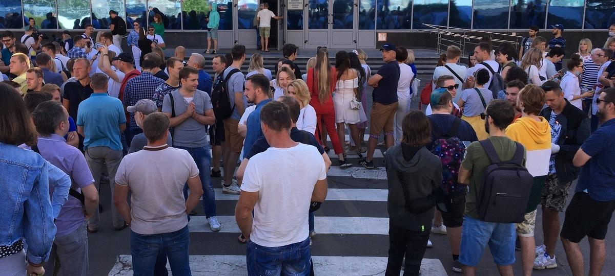 Около полудня перед СТВ и ОНТ стояло более 40 человек. Всего в коллективе обоих телеканалов около 600 сотрудников, говорят те, кто вышел на забастовку.