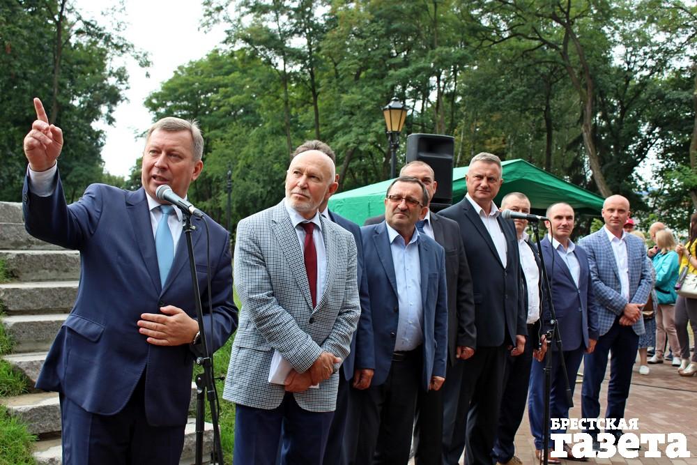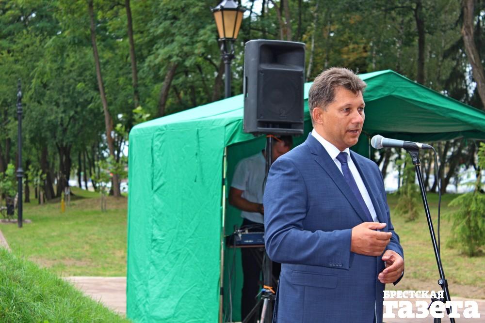 Председатель Брестского горисполкома Александр Рогачук в своем выступлении рассказал о том, как появилась идея возрождения Городского сада, что называется, возвращения к историческим корням.