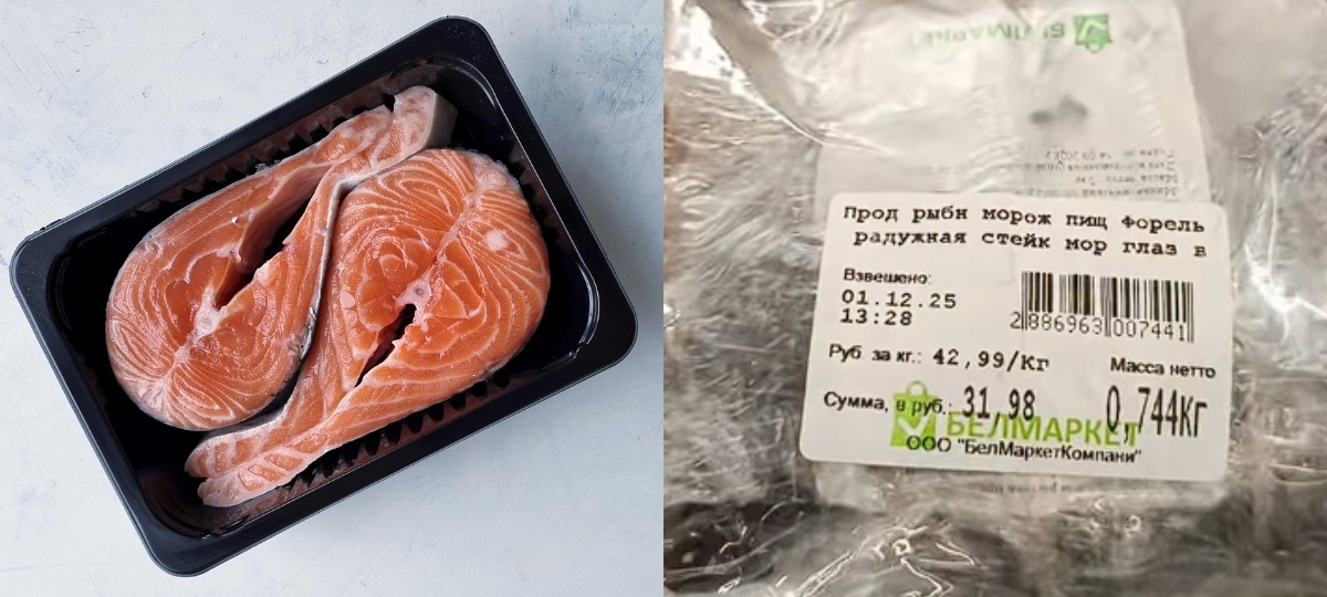 Як вынікае з відэа, упакаваны стэйк замарожанай фарэлі каштаваў 31,98 бел. руб. Агульная цана за кілаграм складала амаль 43 рублі. Аднак калі мужчына праверыў кошт на сканеры, кошт яўна адрозніваўся: амаль 38 руб., то бок большы на шэсць беларускіх рублёў.