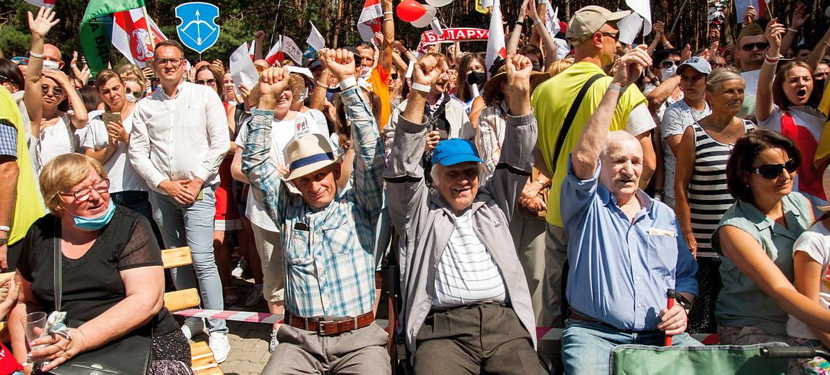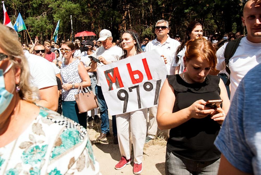 В руках собравшихся – бело-красно-белые флаги и плакаты. Проникнутые и вдохновляемые ощущением единства, они скандировали: «Верым! Можам! Пераможам!», «Любім! Можам! Пераможам!» и «Жыве Беларусь!». Активисты со сцены призвали освободить политических заключенных, голосовать только 9 августа и не идти на досрочное голосование, а приходя на участки, иметь при себе белый браслет и «принимать решение сердцем».