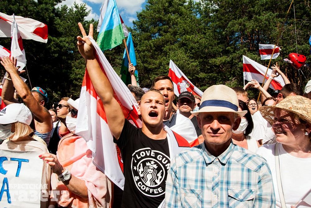 На предвыборный митинг кандидата в президенты Беларуси Светланы Тихановской 2 августа к сцене брестского парка воинов-интернационалистов днем пришли около 20 тысяч тысяч человек, как молодежь, так и люди старшего возраста.