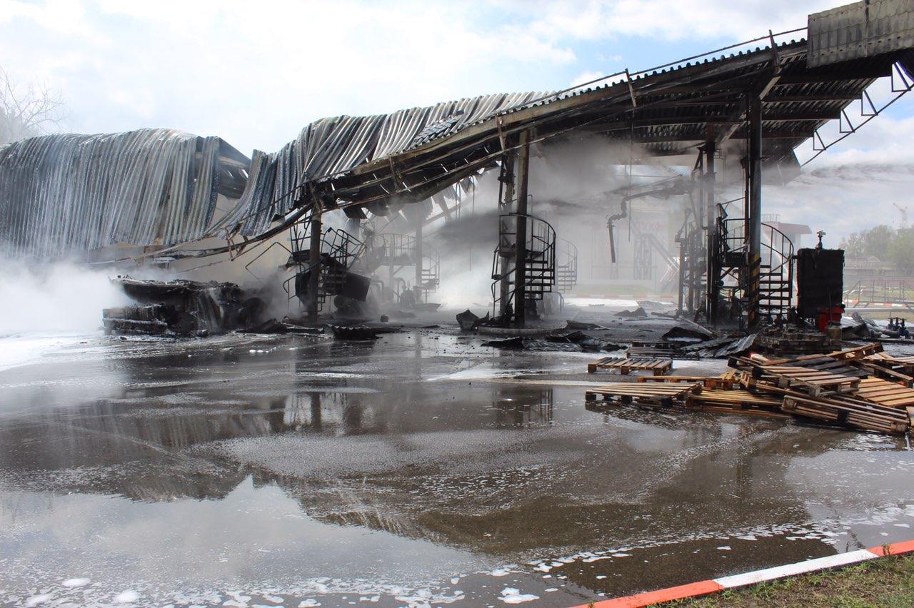 В результате пожара уничтожены автоцистерна и навес сливоналивной эстакады. Пострадавших нет.