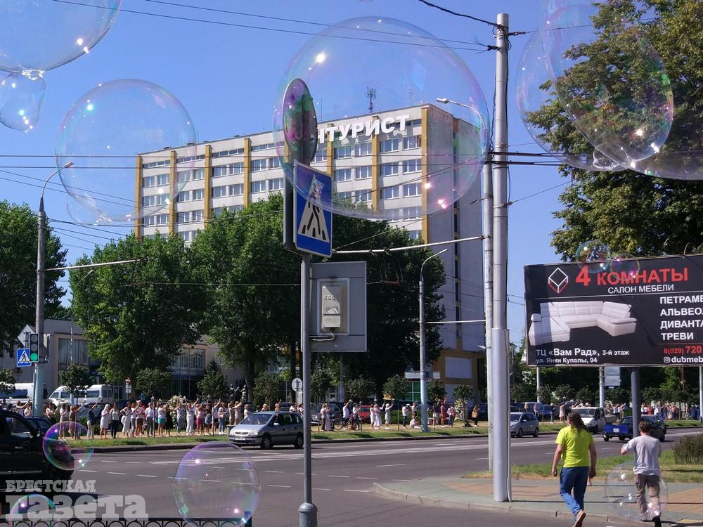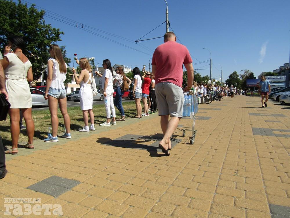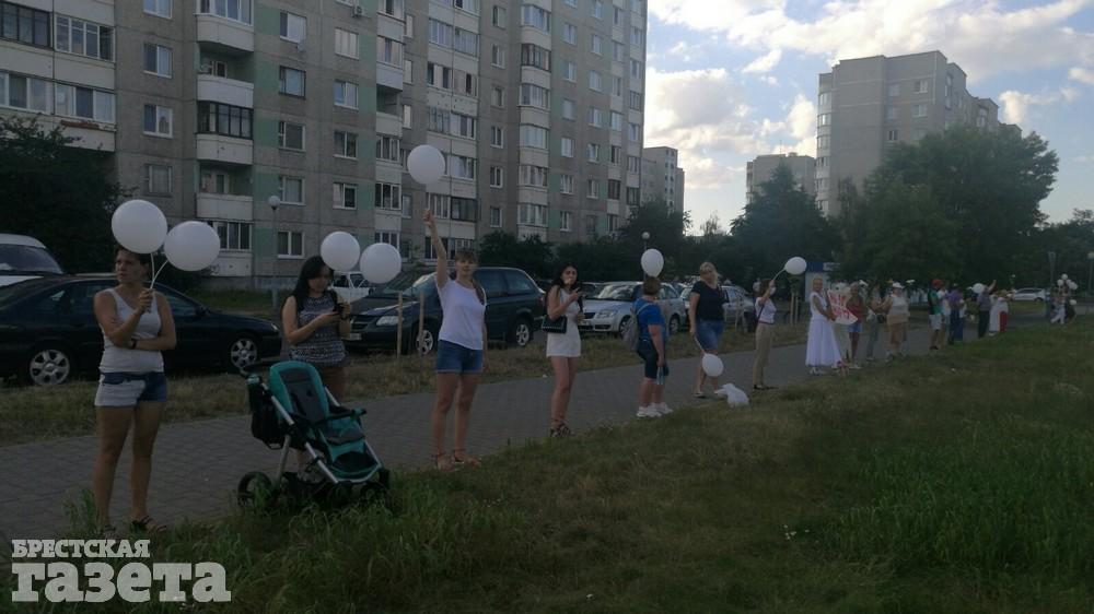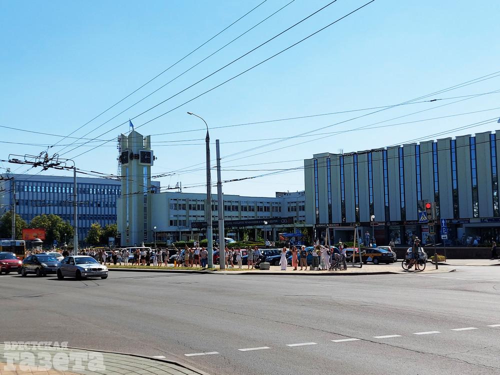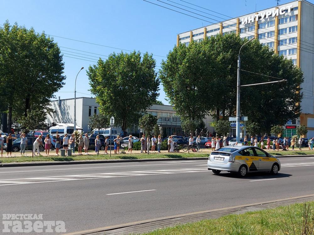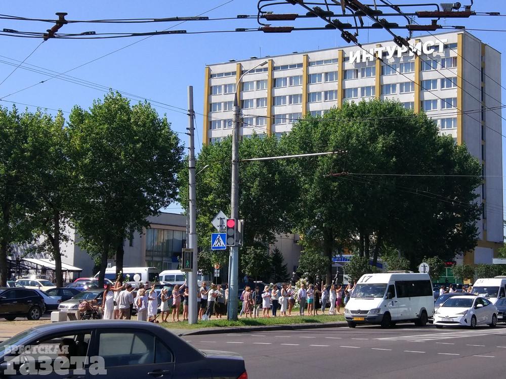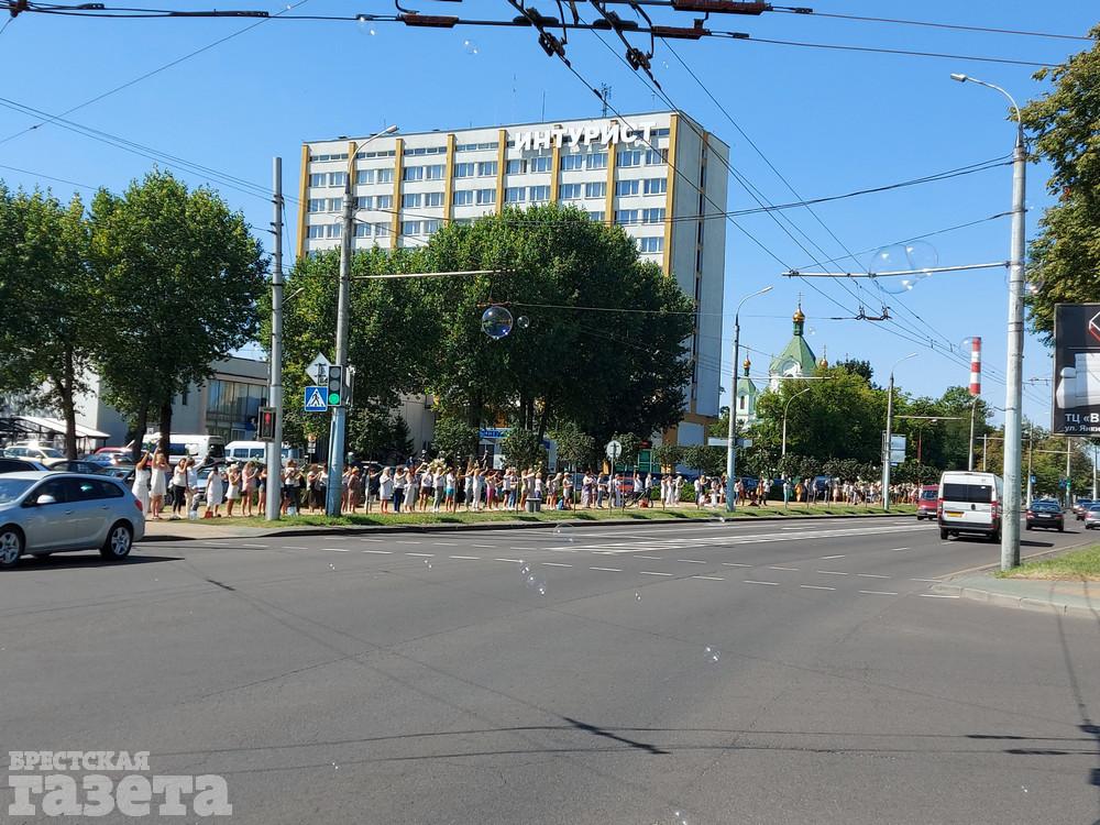 На проспекте Машерова в Бресте девушки и женщины еще с утра 13 августа начали выстраиваться в цепь солидарности.
