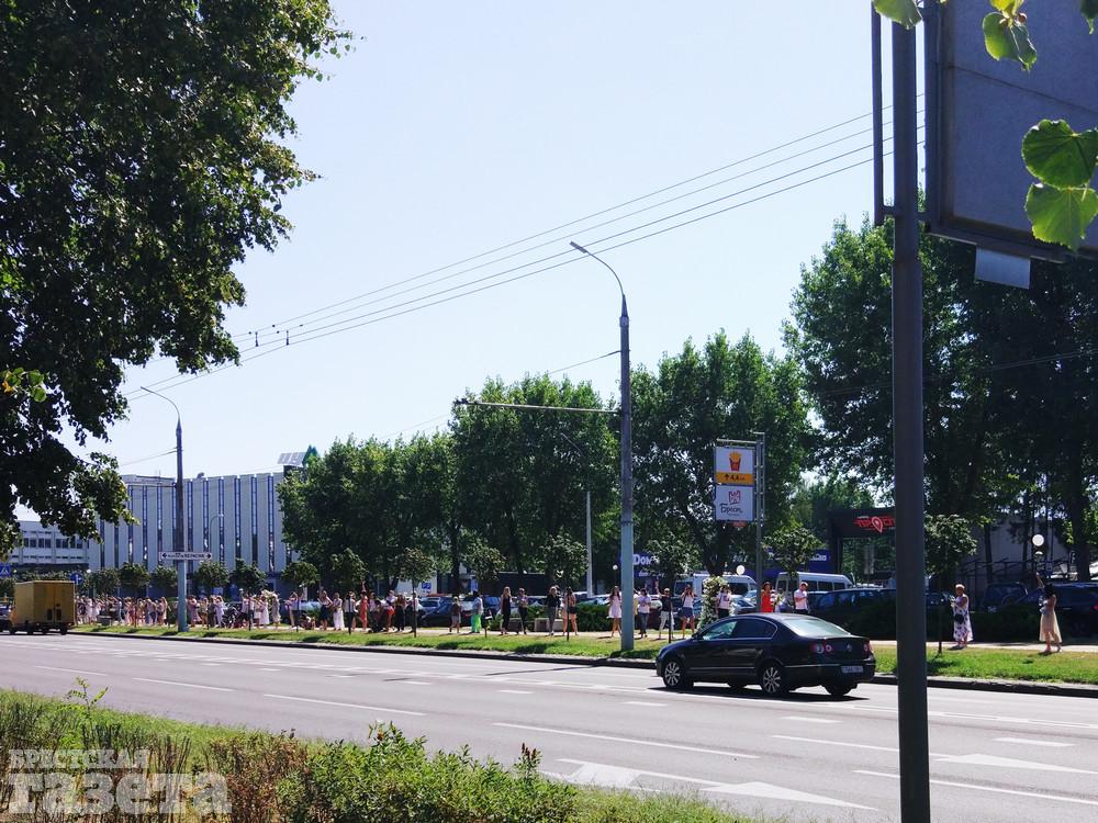 Около 12.00 цепь женщин с цветами растянулась от перекрестка улиц Машерова и Советской до Свято-Симеоновского кафедрального собора.