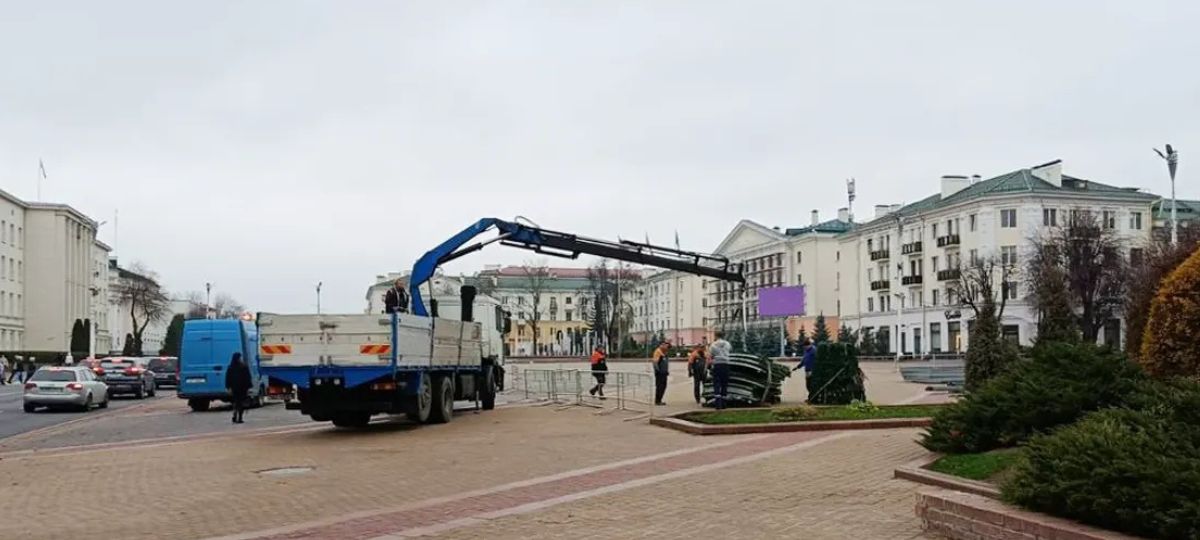 На площади Ленина в Бресте закипела привычная для декабря работа: коммунальные службы монтируют главную городскую елку. Как пояснил генеральный директор КУМПП «Брестское городское ЖКХ» Андрей Гашев, начать пришлось раньше, чем обычно, — из-за катка, который традиционно располагается вокруг елки.