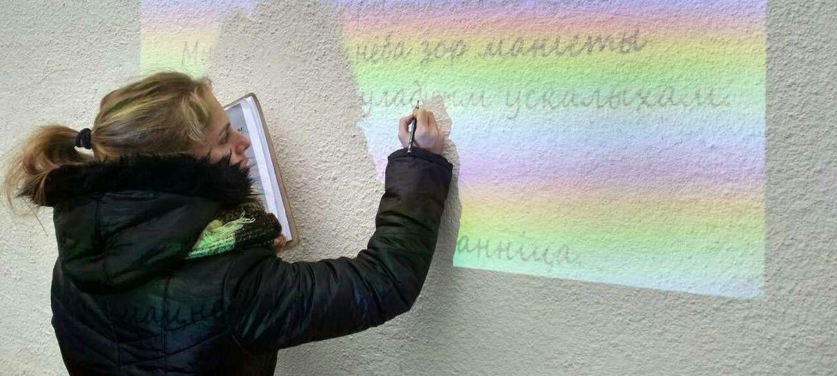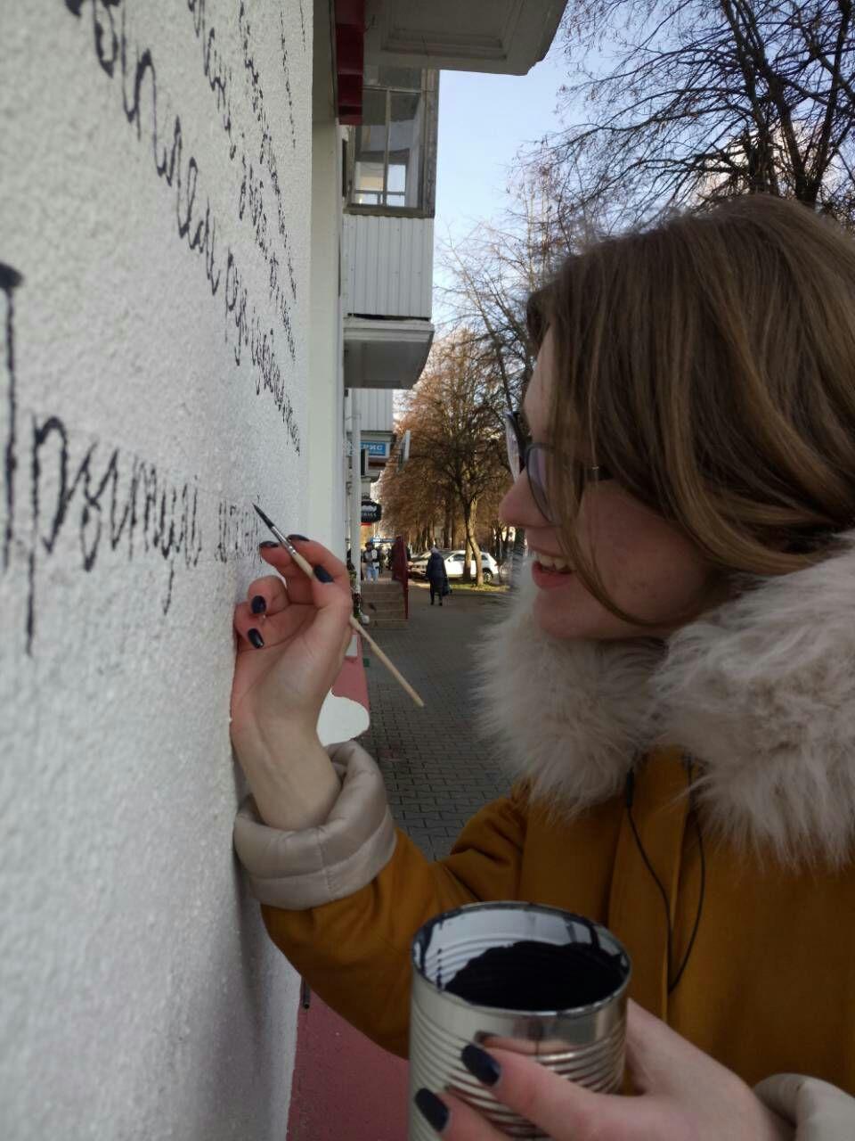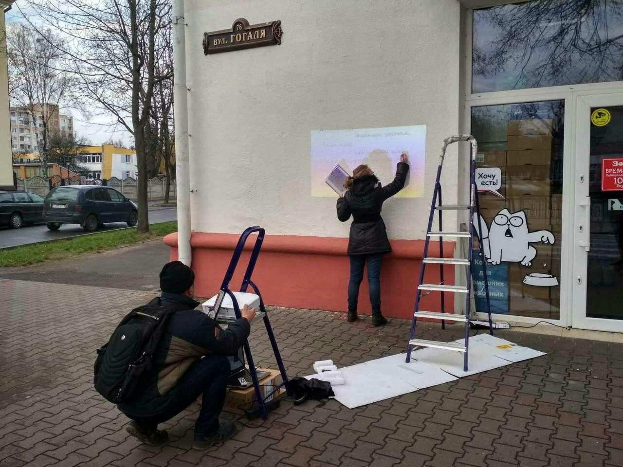 Для воплощения идеи в жизнь Денис пригласил художницу Юлия Романчук, которая в конце ноября начала работу над реализацией инициативы. Первым был написан стих Максима Богдановича, затем — Геннадия Буравкина и в заключение — Нины Матяш.