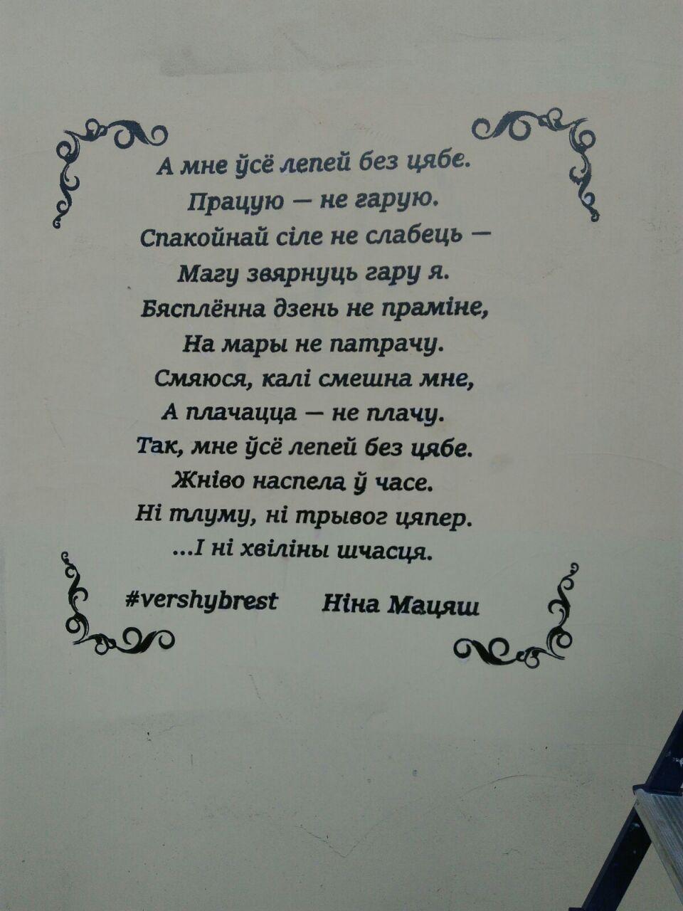 В центре Бреста на улицах Гоголя, Комсомольская и Маяковского прописались стихи Максима Богдановича, Геннадия Буравкина и Нины Матяш.