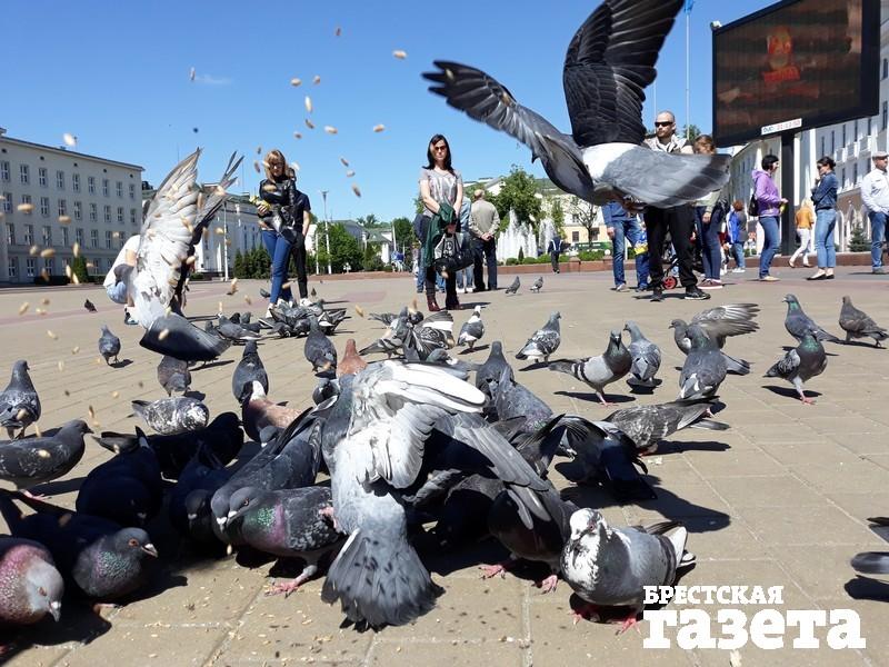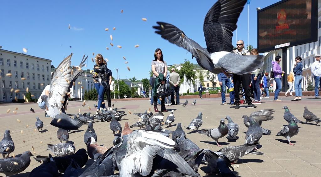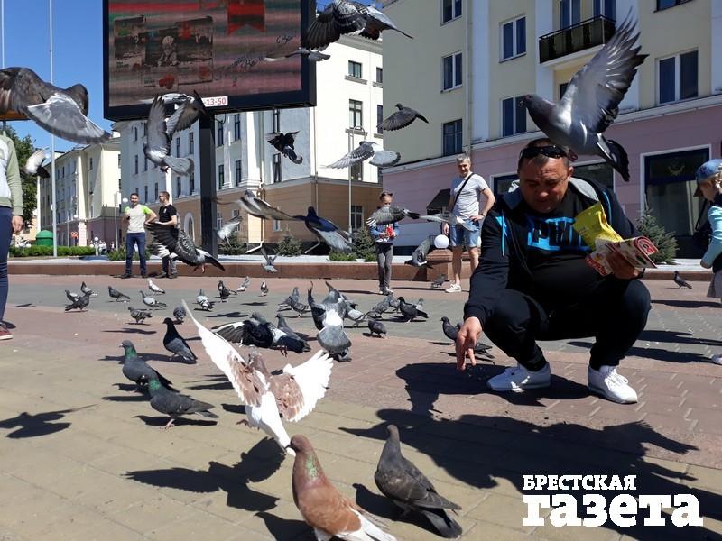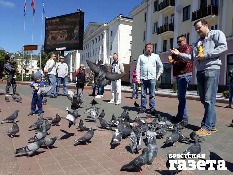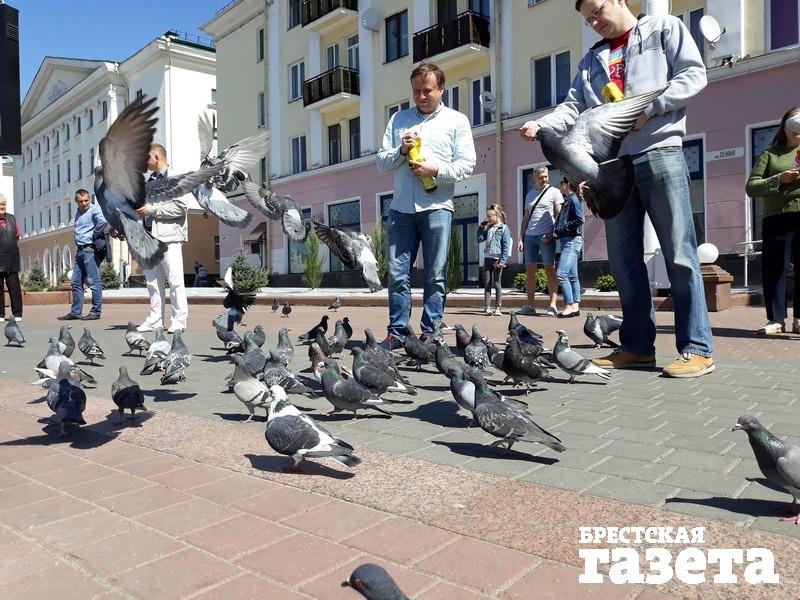 В полдень 6 мая на площади Ленина в Бресте в очередной раз начали собираться люди, чтобы покормить голубей и тем самым высказать свой протест против строительства под Брестом аккумуляторного завода «АйПауэр». По разным оценкам, на площадь для этого вышли не менее 80, но не более 100 человек.
