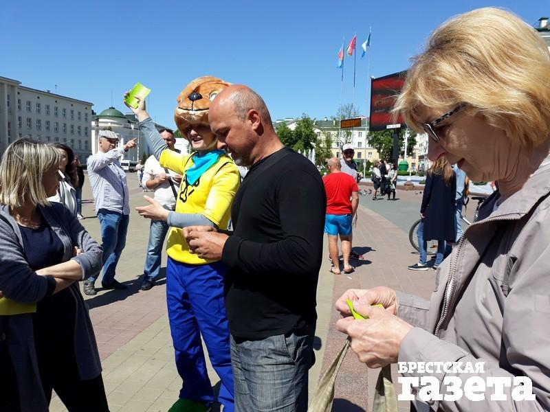 Сегодня на площади Ленина люди по традиции кормили голубей, обсужали последние новости и дальнейшие действия по борьбе со строительством под Брестом аккумуляторного завода.