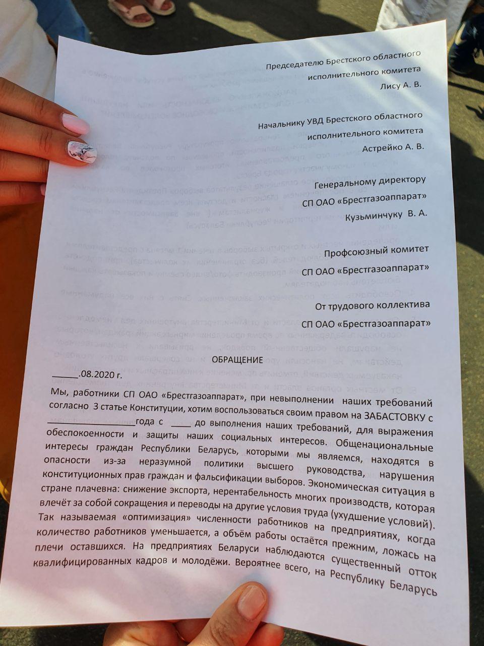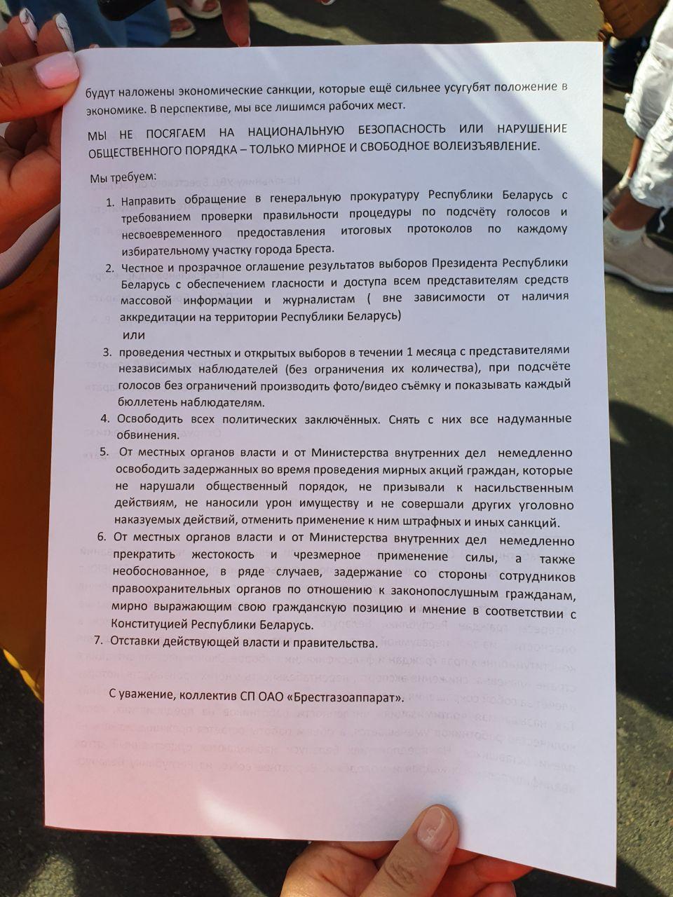 Днем 14 августа к протесту, затронувшему многие предприятия страны, подключились работники головного предприятия СП ОАО «