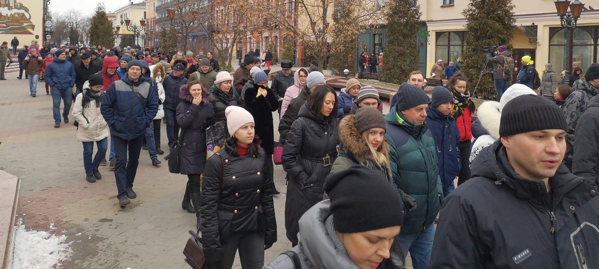 Днем 10 марта на площади Ленина в Бресте прошло традиционное кормление голубей в знак протеста против строительства рядом с городом аккумуляторного завода. В этот раз на него пришли более 150 человек.
