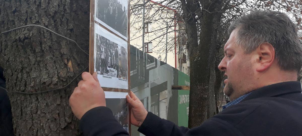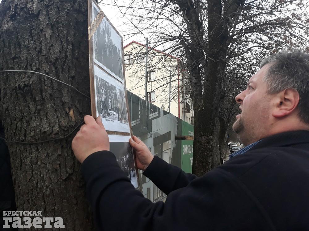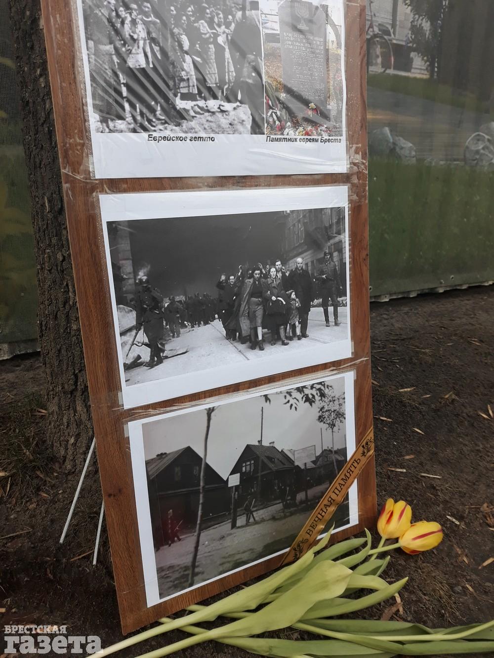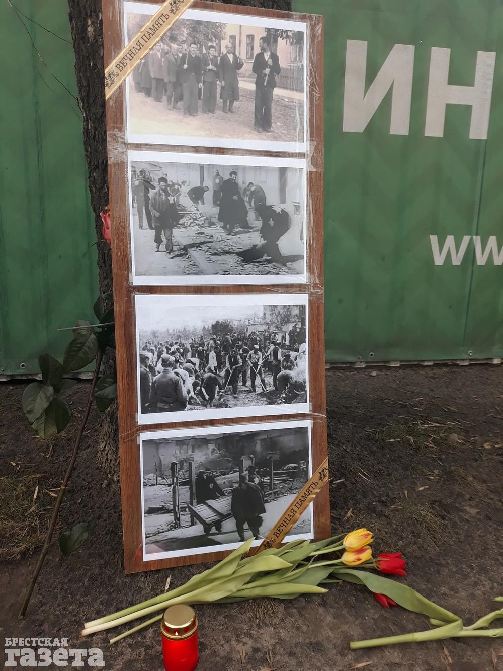 Вечером 11 марта брестский активист Виталий Казак принес к забору стройплощадки, на территории которой обнаружены останки сотен погибших людей, цветы, лампадки и фотографии евреев.