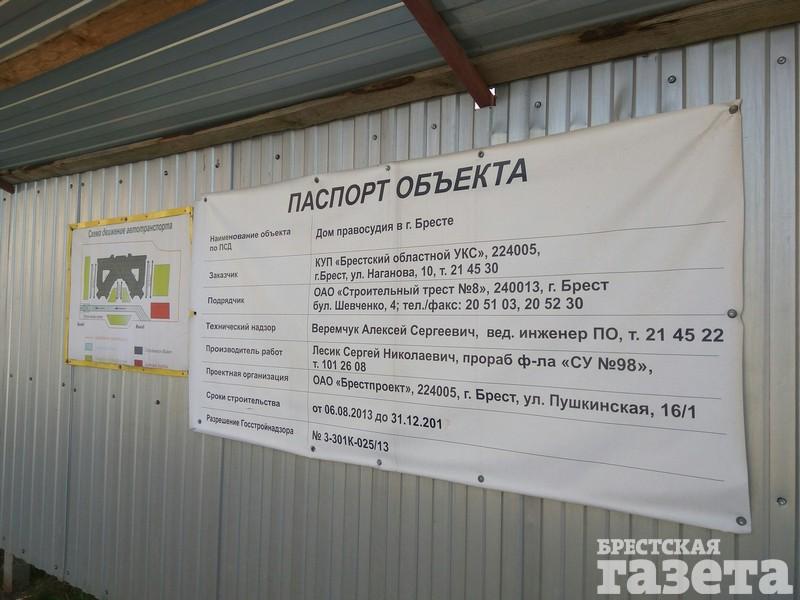 Дом правосудия располагается на проспекте Машерова. Строительство объекта включено в план подготовки к 1000-летию Бреста.