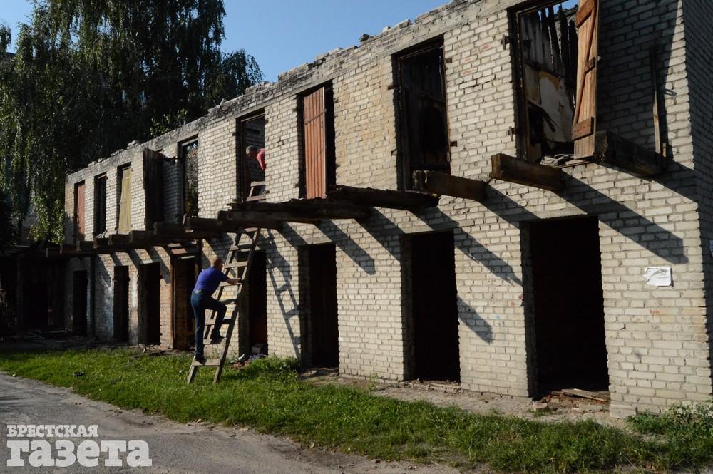 В центре Бреста, в квартале, ограниченном улицами Советская, Мицкевича, Комсомольская и Пушкинская, разбирают двухэтажный сарай послевоенной постройки. 5 и 6 августа корреспондент «БГ» наблюдала, как там ведутся работы. Рабочие вручную и при помощи техники разбирают сарай.