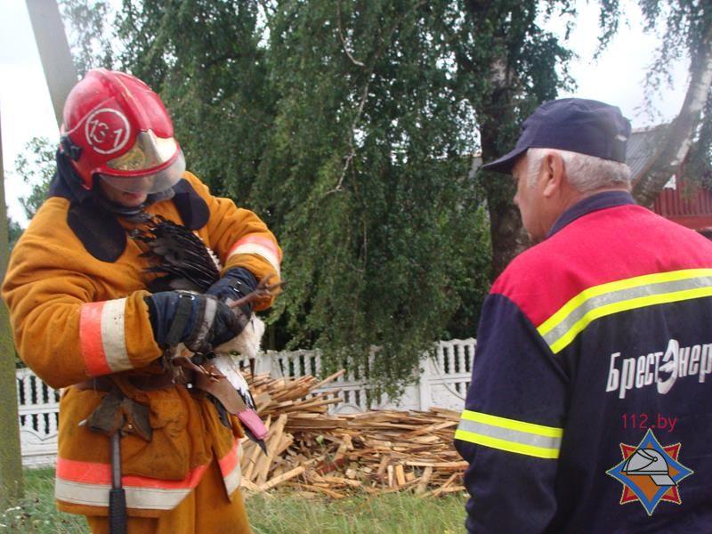 В центр оперативного управления Ляховичского райотдела по ЧС 24 августа поступил необычный звонок, в котором сообщалось, что по улице Октябрьской требуется помощь аисту, сообщает Брестское областное управление МЧС.