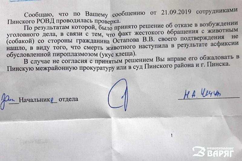 Читайте также: «Пытался избавиться от собаки путем умерщвления». Истязателя пса в Ружанах нашли, но уголовное дело на него не завели