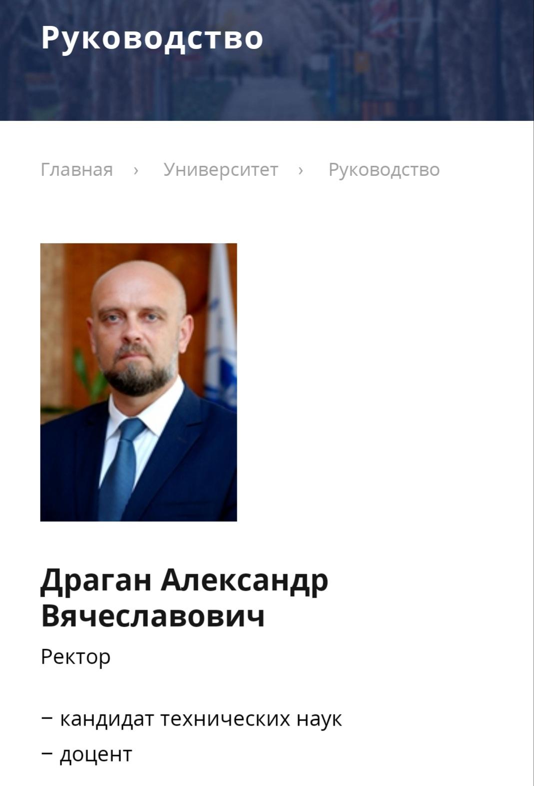На официальном сайте БрГТУ Александр Драган тоже обозначен как ректор университета. На эту должность 22 мая 2018 года его назначил Александр Лукашенко.
