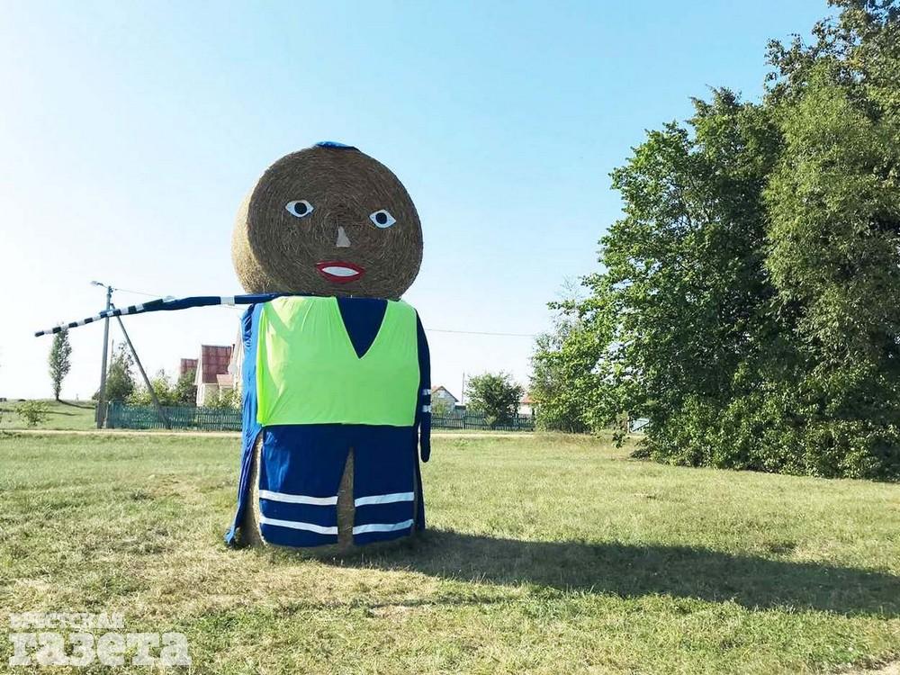 Соломенного сотрудника ГАИ соорудили у агрогородка Турна Большая (кстати, установлен он перед камерой фотофиксации скорости).