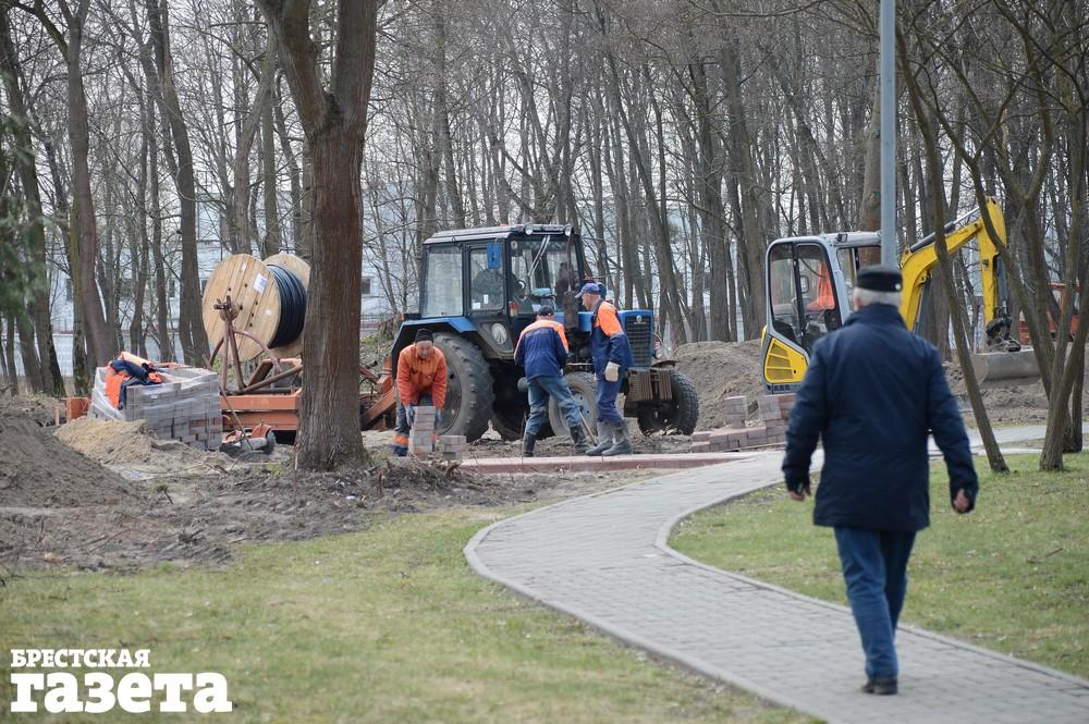 В пятницу 5 апреля корреспондент «БГ» застала за выкладыванием плитки на пешеходных дорожках в Городском саду. Дорожек будет пять. Еще одну начнут прокладывать в сторону бывшего порта. Но перед этим снесут бетонный забор и старые разрушающиеся здания, которые находятся на территории парковой зоны, рассказали работники брестского ДЭП.