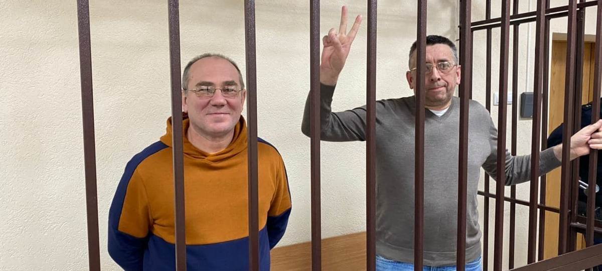 «Дзякуй. Расія ў Магілёве ўжо», — сказал Петрухин, за что получил замечание от судьи и предупреждение, что в случае еще одного нарушения его удалят из зала.