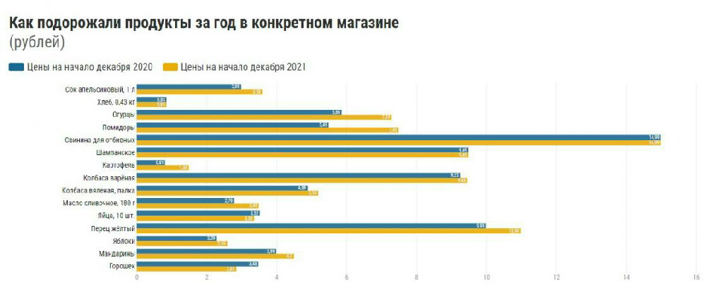 Получилось, что наши продукты за это время подорожали на 10,19%, что немного ниже ноябрьской инфляции, которая составила 10,3%.