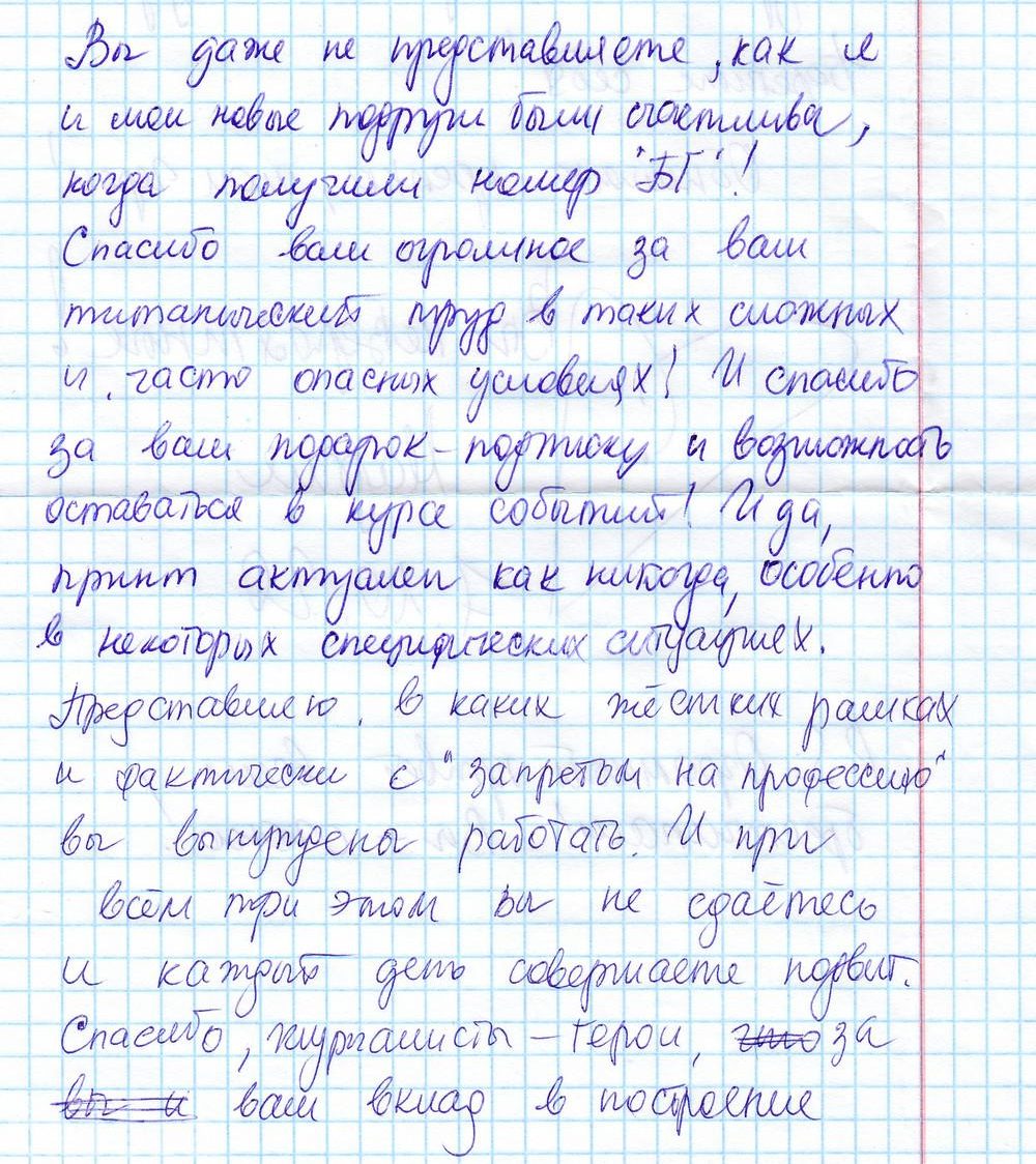 Спасибо, журналисты – герои, за ваш вклад в построение гражданского общества!