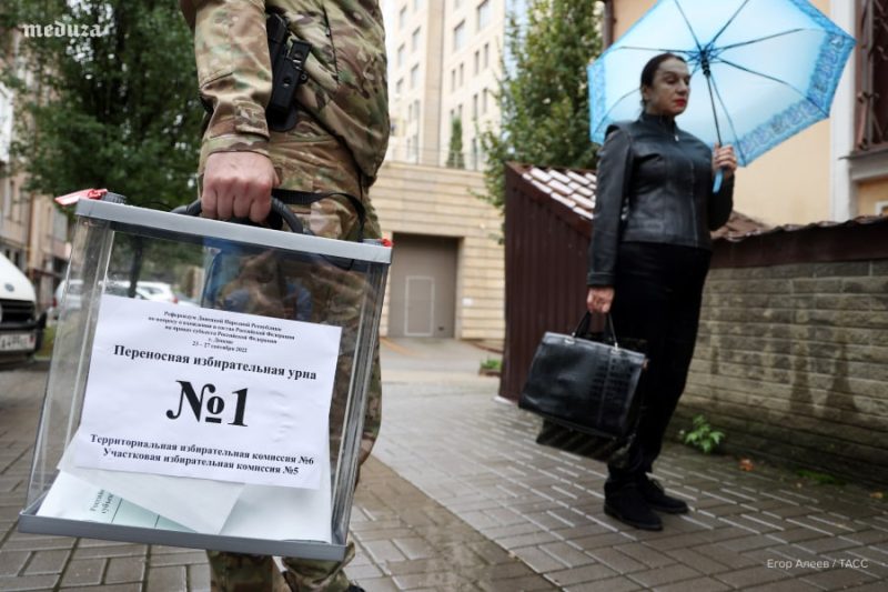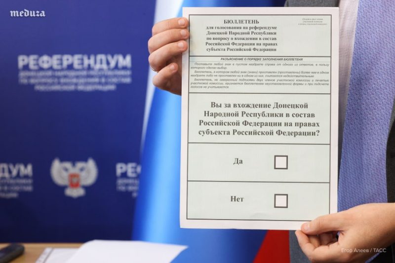 Вечером 27 сентября «избиркомы» самопровозглашенных республик Донбасса и оккупированных российскими войсками территорий Херсонской и Запорожской областей подвели итоги «референдумов» после обработки 100% протоколов.