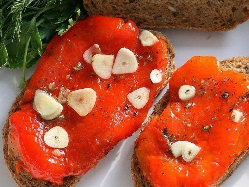 Надо: 4 больших болгарских перца, 4 зубчика чеснока, 1 ч. л. с горкой сушеного базилика, 1 ч. л. с горкой крупной соли, 1 ч. л. сахара, 6-7 горошин черного перца, 5 ст. л. оливкового масла, 1 ст. л. бальзамического уксуса, сок четвертинки лимона.