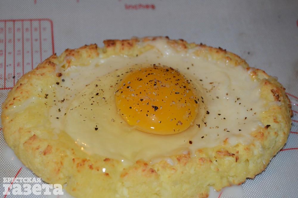 Как только сыр расплавится, разбейте в каждую лодочку по одному сырому яйцу, посолите, поперчите и опять в духовку.
