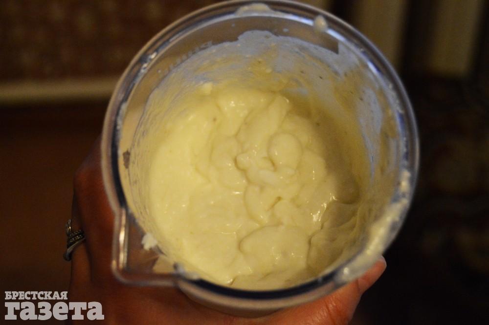 Готовим: Положите в высокую емкость творог, очищенные от кожуры бананы и йогурт.