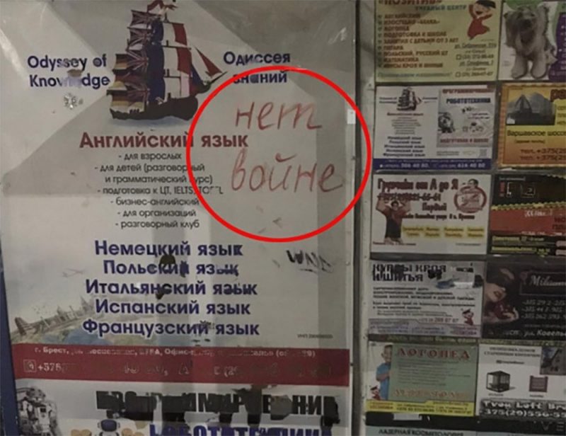 За антивоенную надпись на 68-летнюю Людмилу Коган из Бреста завели уголовное дело за то, что написала «Жыве Беларусь» и «Нет войне» на остановке общественного транспорта в Бресте. 22 февраля 2023 года суд Московского района Бреста осудил Людмилу на один год «домашней химии» за осквернение зданий и порчу имущества (ст.341 УК).