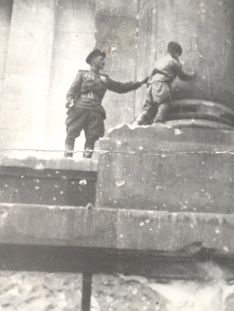 Отец Юрия тоже был на фронте, служил в авиации. В Берлине он сумел через комендатуру разыскать наш полк и встретиться с сыном. Я, будучи минским школьником, в кружке при Дворце пионеров изучал фотодело. Когда на фронте в руки попал трофейный фотоаппарат, полученные знания мне пригодились. Я запечатлел встречу отца и сына Семеряковых. А к 40-летию Победы я увидел это фото в газете «Правда». Из небольшой заметки узнал, что мой однополчанин стал музыкантом и живет в Грозном, тогда это была Чечено-Ингушская АССР. Я написал письмо в «Правду» на имя автора той публикации, вложив в конверт два своих фото. Одно, которое было сделано сразу после окончания войны, на другом — тоже я, но уже по прошествии многих лет. Ведь хотя бы на одном из них Юра должен был меня узнать!