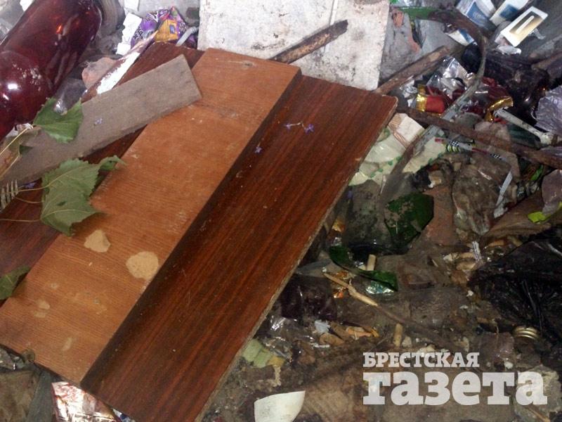 Жильцы дома показали наземную часть бомбоубежища, заполненную бутылками и другим хламом. По их мнению, это и есть главная составляющая их проблемы. Они рассказали, что по этому поводу, а также из-за отсутствия уборки двора и перерасчета за техобслуживание не раз обращались в горисполком.