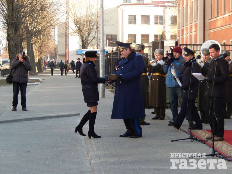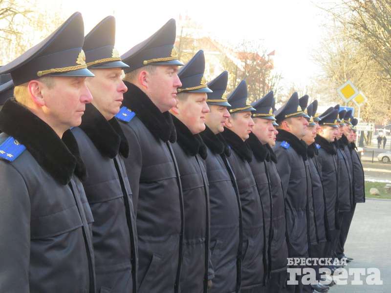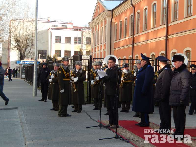 Перед новым зданием управления Следственного комитета РБ по Брестской области начинается церемония его открытия. На ней присутствуют руководители городской исполнительной власти, силовых и правоохранительных структур, строительных организаций.