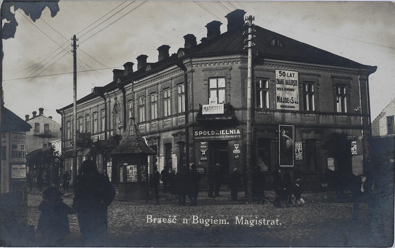 Магистрат находился на тогдашней улице Домбровского (современной ул. Советской). Местное самоуправление было сконцентрировано в магистрате, который был создан законом польского правительства от 30.02.1920 г. С 1933 г. в соответствии с изменением законодательства магистрат был реорганизован в городское управление. В 1930-х гг. дом делили между собой власть (Брестский магистрат), магазины (письменных принадлежностей, хозяйственных товаров, продукции для кормящих матерей), другие организации.