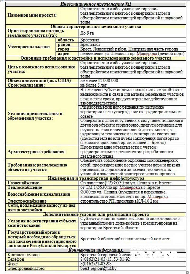 Брестский активист, координатор движения «За Свободу» Денис Турченяк предлагает обратить внимание на то, что на сайте горисполкома можно ознакомиться с инвестиционным предложением, согласно которому инвестору обещано до 9 га земли для строительства торгово-развлекательного центра с концертным залом именно на месте этого парка.