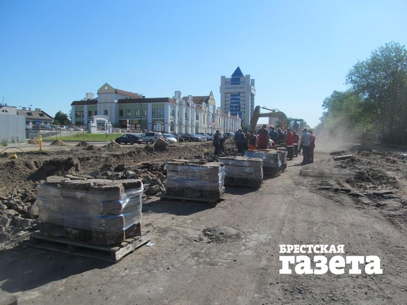 Поэтому работникам Брестского дорожно-эксплуатационного предприятия пришлось вести работы на данном участке (от музея железнодорожной техники до улицы Коммунистической) практически вручную. С помощью техники лишь ослаблялась прочность старой кладки. К сведению: каждый блок плитки весит не менее 30 кг.