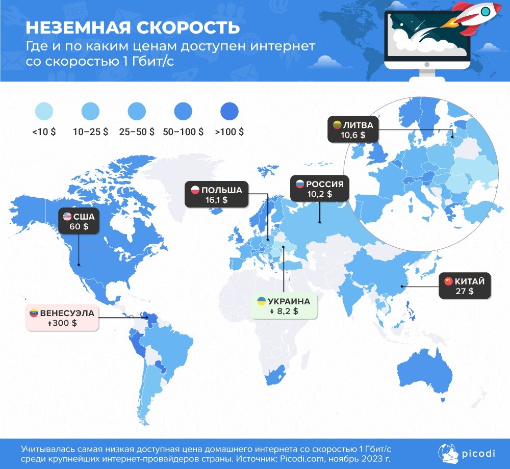 Сколько стоит интернет 1 Гбит/с в мире?