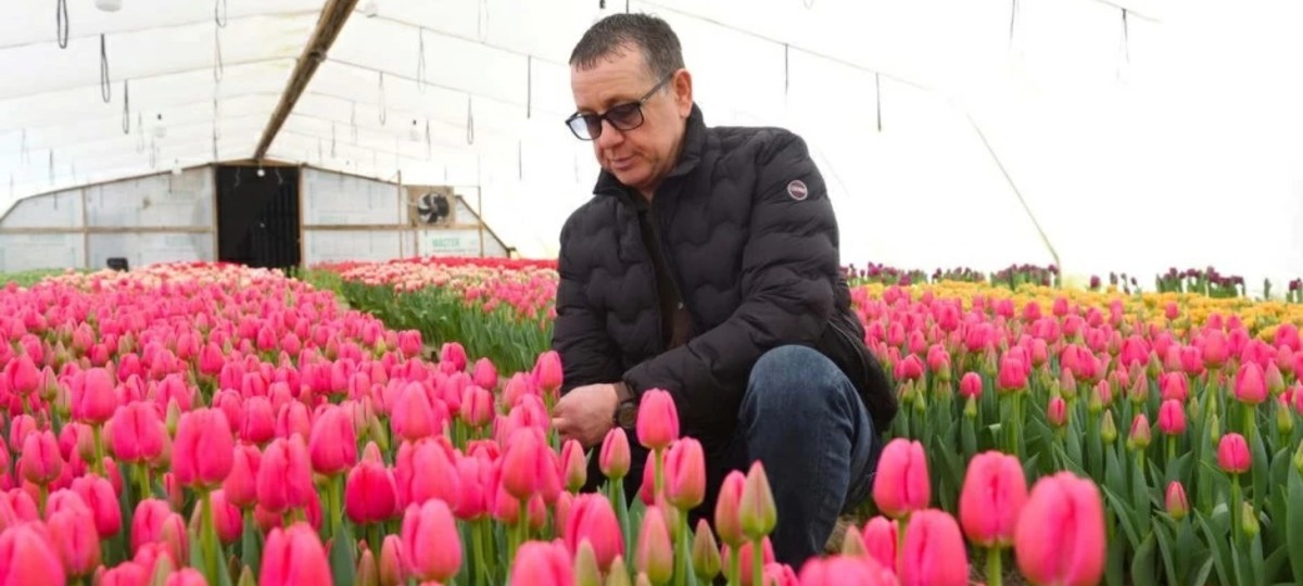 «Наша машина уже держит курс на поселок Садовый Пинского района. Возле дома Владимира и Ларисы Диковицких разбиты большие теплицы. Со стороны и не скажешь, что внутри кипит своя жизнь: тысячи тюльпанов вырывают из грунта прямо с луковицами, цветы аккуратно обрезают, формируют в букеты по 25 штук и отправляют в холодильник. К концу февраля полмиллиона разноцветных цветов должны разъехаться по стране», — говорится в тексте.