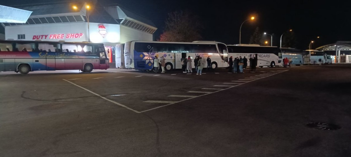 Подъезжая к границе и глядя на время, мы поняли, что уже не успеем приехать к назначенному времени. Многие люди, у которых были пересадки, перенесли свои билеты. Но на этом все не заканчивается. Когда нам оставалось 35 минут (судя по карте), без объявления мы заехали на заправку, открыли двери и сказали: «Выходите, ждите другой автобус, нам нужно ехать обратно». Сказать, что все были в шоке, — ничего не сказать.