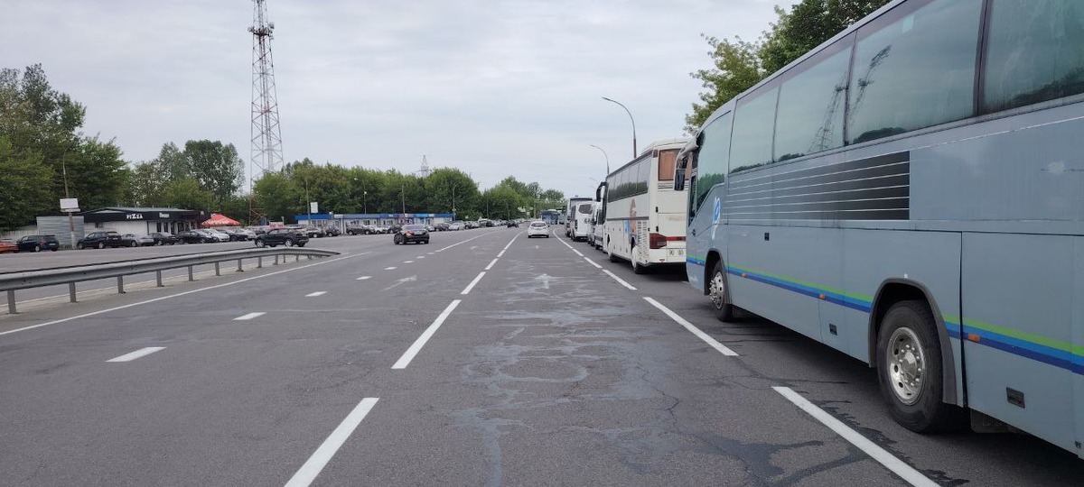 «РБ — РП, полчаса назад приехали на границу, очередь была 11 автобусов до шлагбаума, за полчаса запустили 3–4 автобуса. Из нашего автобуса никто даже пересаживаться не стал. Посмотрим, как дальше будет».