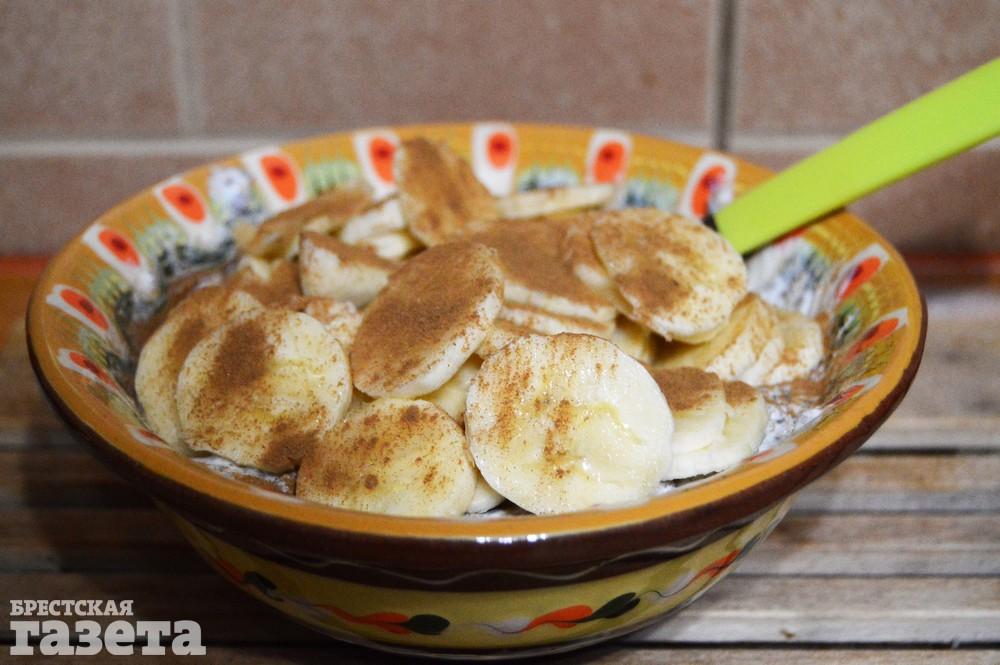 На две порции вам понадобится 250 г густого греческого йогурта, 2 банана, 4 ст. л. семян чиа, 2 ч. л. семян льна, 4 ст. л. клетчатки, 2 горсти отрубей, мед, корица по вкусу.