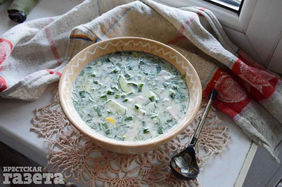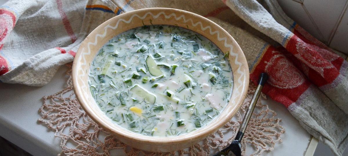 Для него вам понадобится 1 л кефира, 3 огурца, 3 вареных яйца, 200 г вареной колбасы (сосисок, курятины, говядины и так далее), 1 пучок зелени, 1 пучок зеленого лука, 2 столовые ложки лимонного сока или уксуса, соль по вкусу.