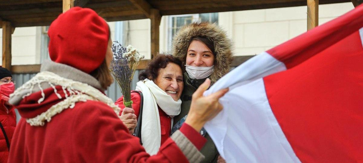 Минск. Женский марш стартовал после полудня от ТЦ «Дана Молл». Около ста участниц двинулись в сторону центра города с цветами в руках, сообщает tut.by. Они скандируют «Заберите Сашу, отдайте Машу!»