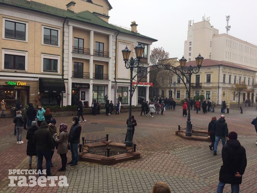 В Бресте демонстранты после разгона на проспекте Машерова вернулись к ТЦ Дидас Персия. Здесь они стояли небольшими группами без символики и общались. Рядом с демонстрантами стояли сотрудники милиции в форме.