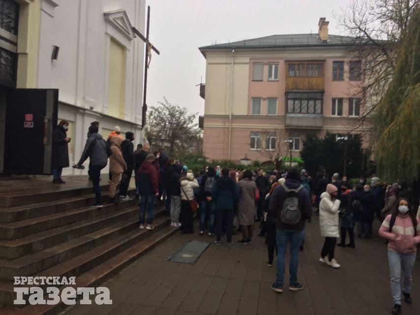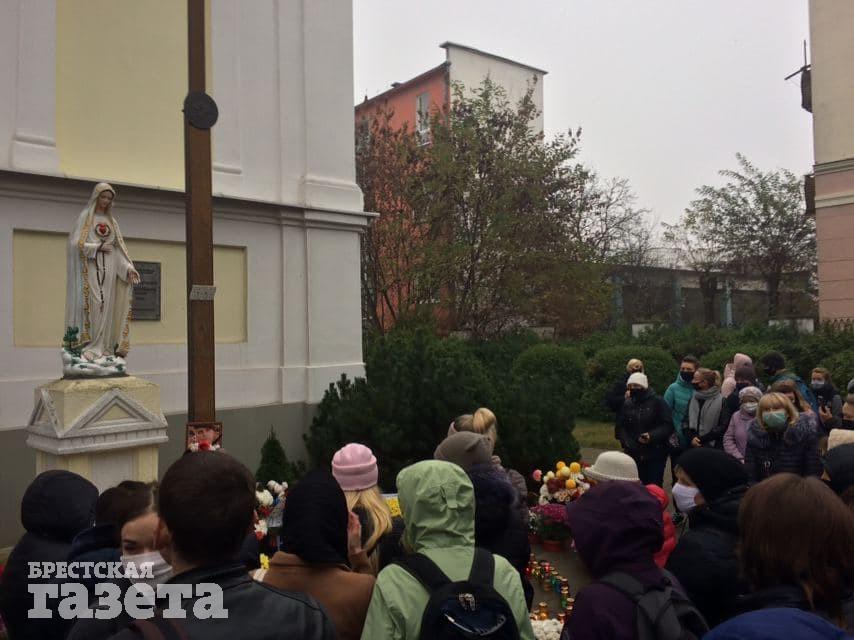 К 14.00 в Бресте около 200 демонстрантов собрались на перекрестке Советской и улицы Маяковского. Колонна кричала: «На костел». Возле креста у костела на Ленина стоит народный мемориал Роману Бондаренко. Люди пока стоят, не идут.