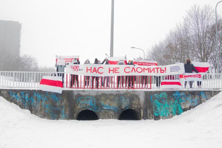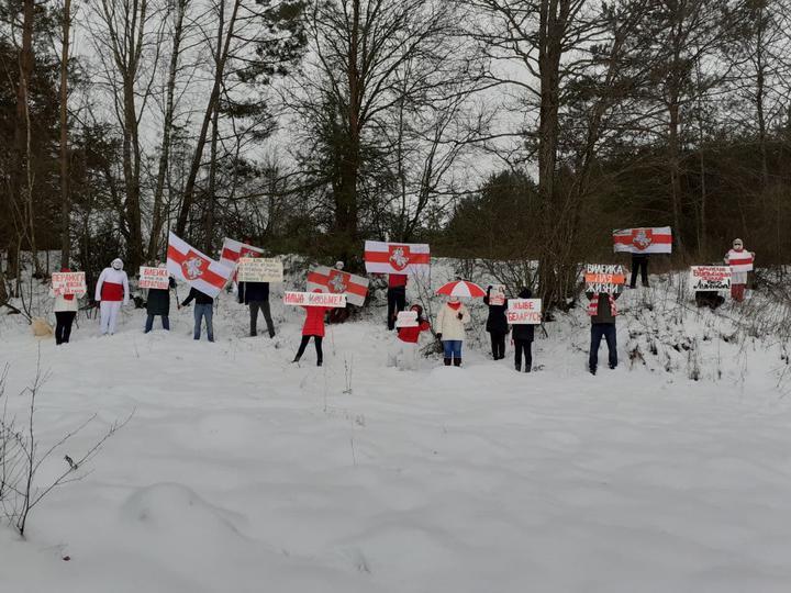 Жители Малиновки сегодня выходили на акцию солидарности с транспарантом Свободного объединения спортсменов Беларуси.