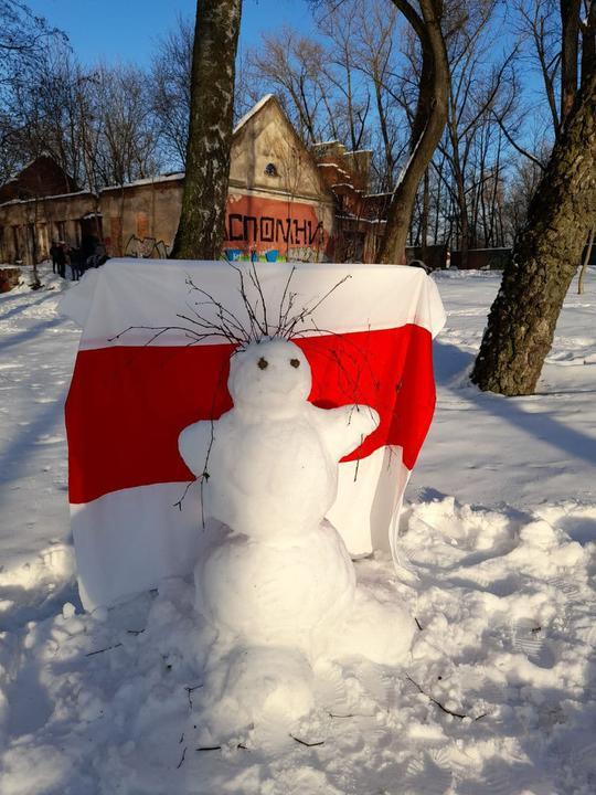 С самого утра в столичной Грушевке появился протестный снеговик.